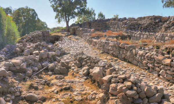 • The cobbled road outside the village of Bethsaida, in use from about 900 BC to AD 400 and recently excavated.