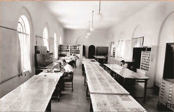 • Fragments of the scrolls laid out in the 'Scrollery' at the Palestine Archaeology Museum.