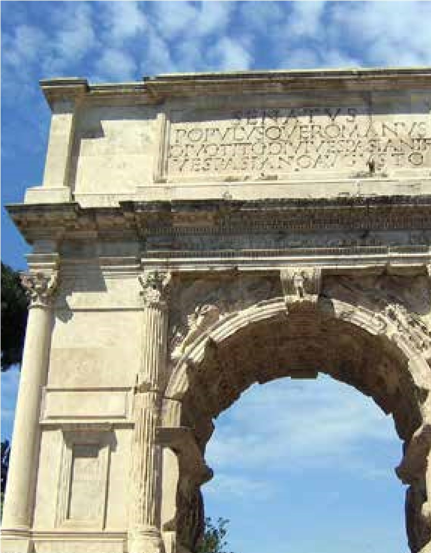 Above: the candlestick from the temple being carried off from Jerusalem – detail from the Arch of Titus in Rome, below.